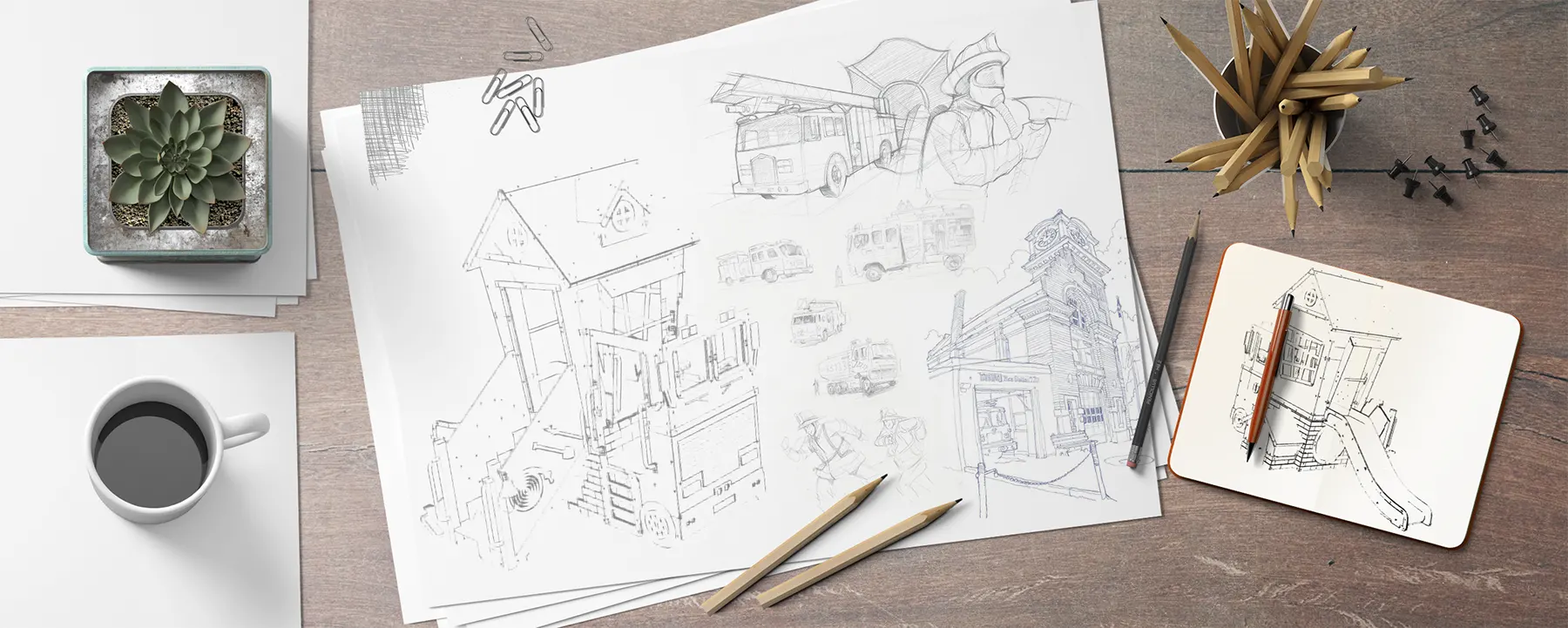 Каждый проект начинается с эскиза — предварительного наброска, отражающего замысел дизайнера. Чаще всего это быстрый, свободный рисунок от руки, который помогает наглядно зафиксировать идею. На этом этапе рождается образ будущего объекта, формируется стиль и общее настроение, а заказчик получает возможность уже в самом начале внести свои пожелания.